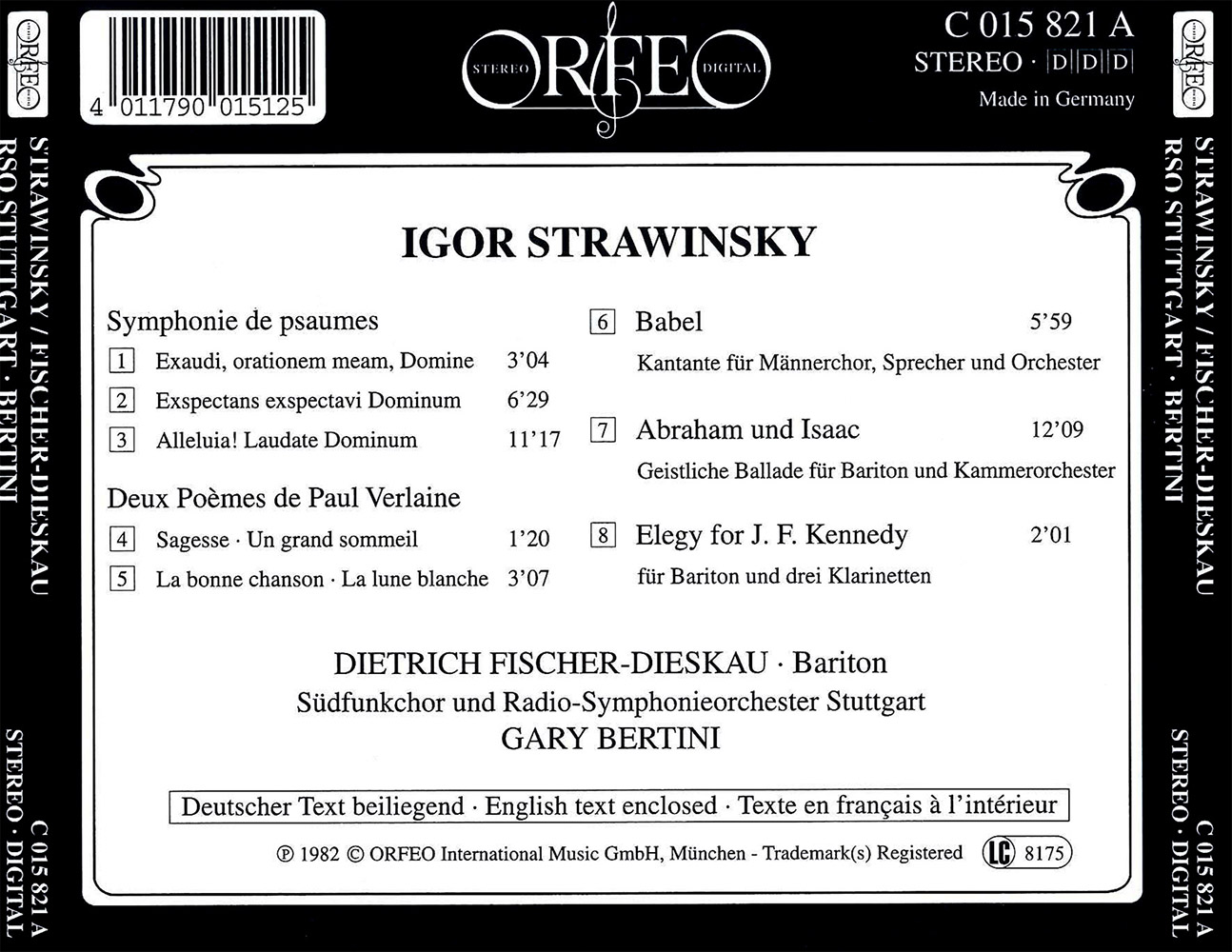 Stravinsky: Symphony of Psalms - 2 Poèmes de Paul Verlaine - Babel - Abraham and Isaac - Elegy for J.F.K.