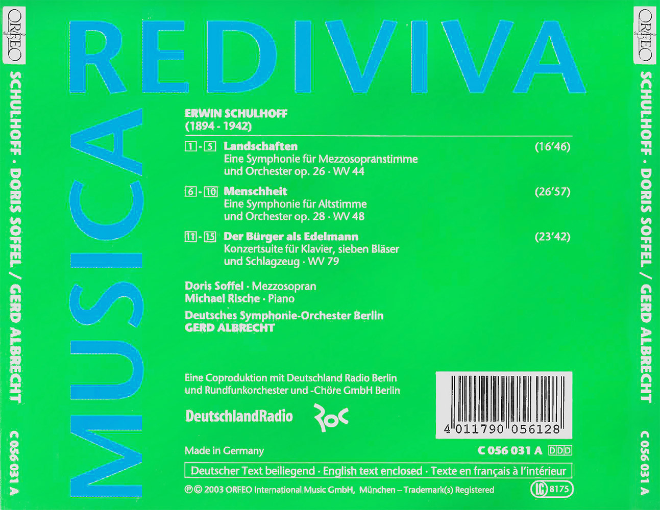 Schulhoff: Landschaften / Menschheit / Le Bourgeois gentilhomme