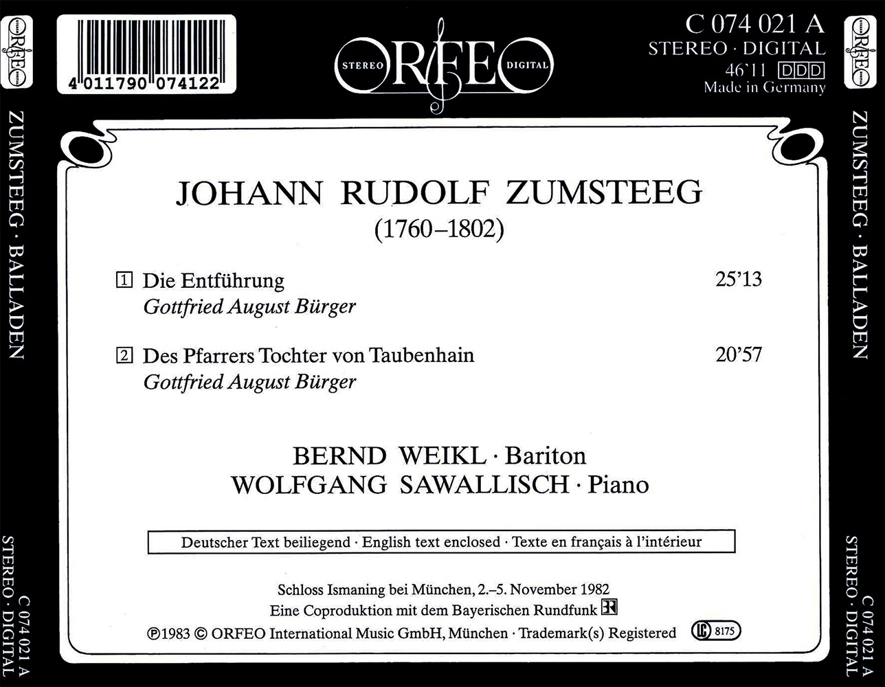 Johann Rudolf Zumsteeg: Die Entführung / Des Pfarrers Tochter von Taubenhain