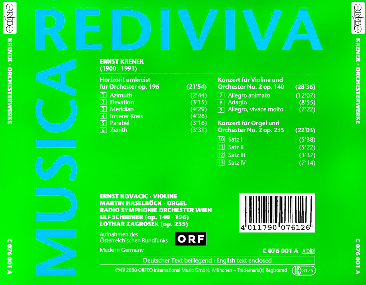 E. Krenek: Op. 196, Op. 140, Op. 235