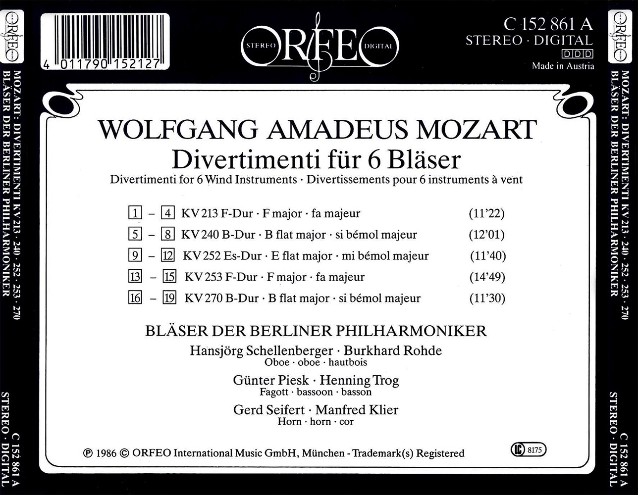 Mozart: Divertimenti, K. 213, 240, 252, 253, 270