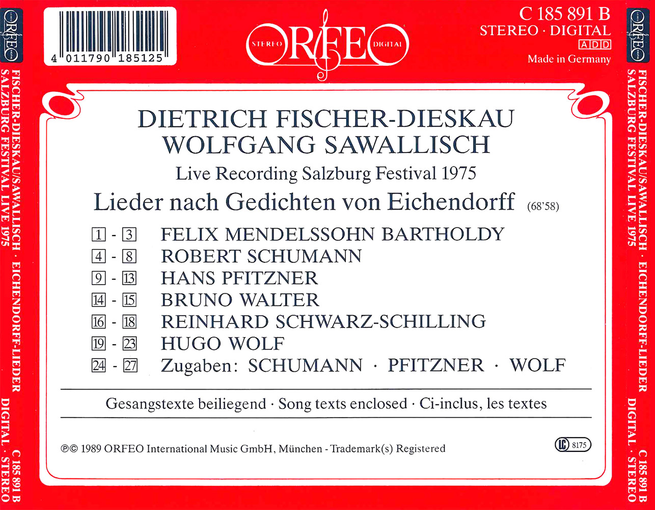 Liederabend Salzburger Festspiele Live 1975: Lieder nach Gedichtenvon Eichendorff