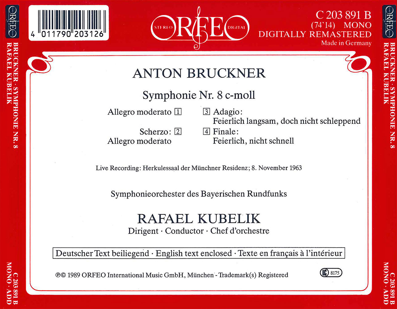 Symphony No. 8 in C Minor, WAB 108 (ed. R. Haas from 1887 and 1890 versions)
