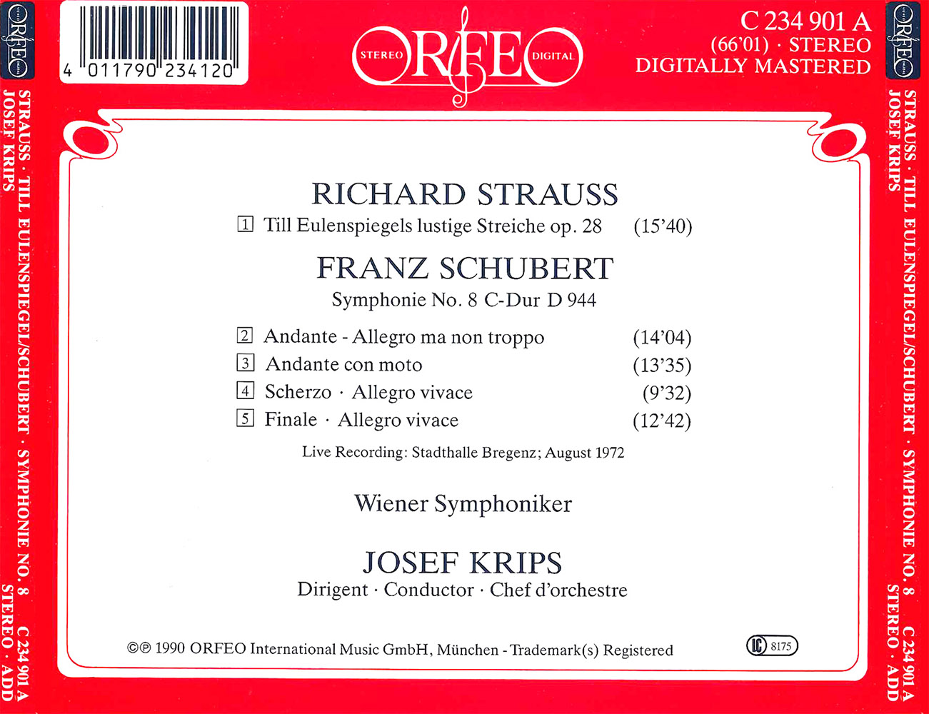 Josef Krips - Richard Strauss, Richard: Till Eulenspiegels; Franz Schubert, Franz: Symphony No. 9 in C Major, D. 944