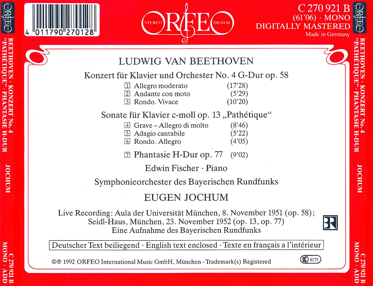 Ludwig van Beethoven: Piano Concerto No. 4; Pathétique Op. 13; Fantasia in G Minor, Op. 77