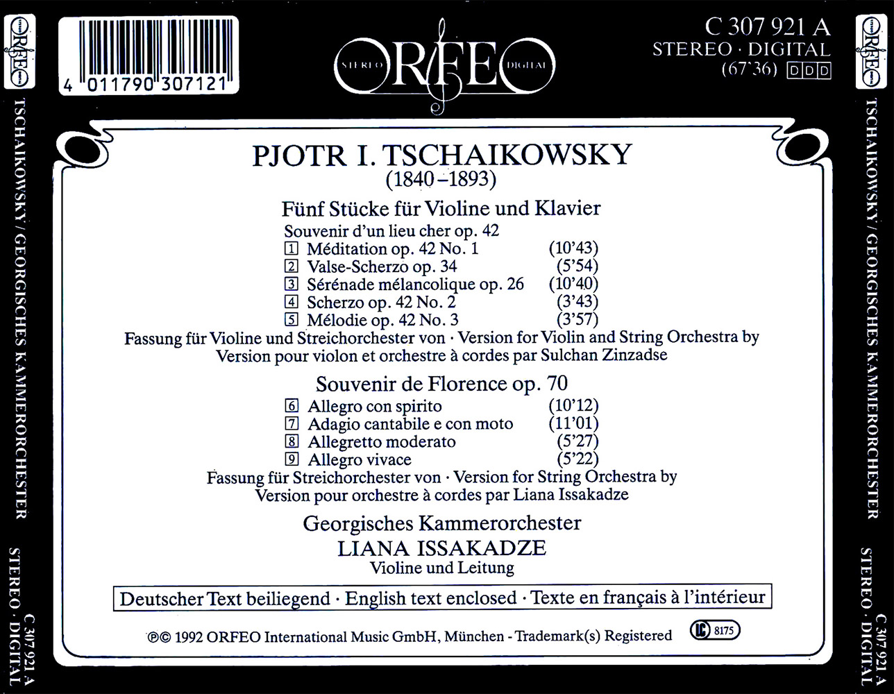 Souvenir d'un lieu cher, Op. 42 (arr. S.F. Zinzadse for violin and orchestra)