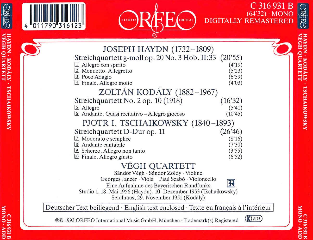 Haydn: Streichquartett, Op. 20/3 - Kodály: Streichquartett No. 2 - Tchaikovsky: Streichquarett, Op. 11