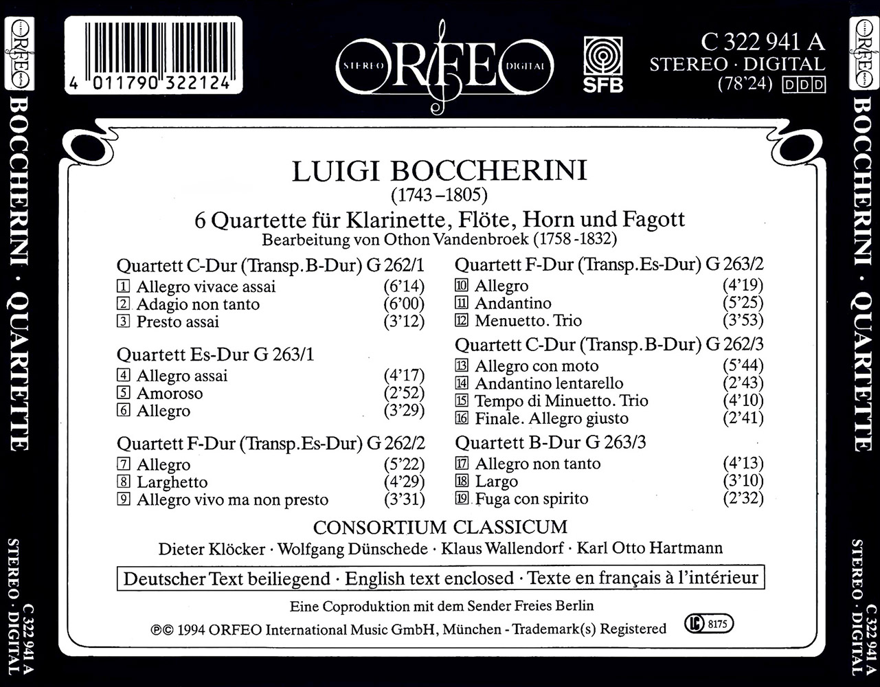 LUIGI BOCCHERINI: 6 Quartette fur Klarinette, Flote, Horn und Fagott