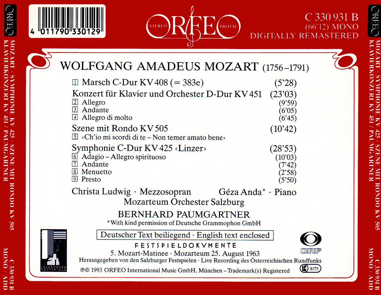 Mozart: Symphonie, K. 425 - Marsch, K. 408 - Klavierkonzert, K. 451 - Szene mit rondo, K. 505