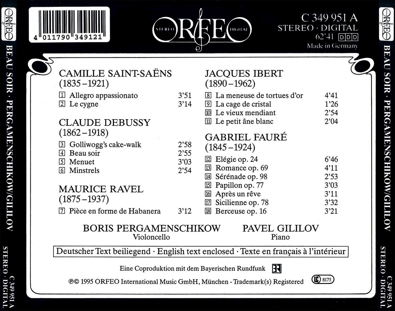 Beau soir (arr. A. Gretchaninov for cello and piano)