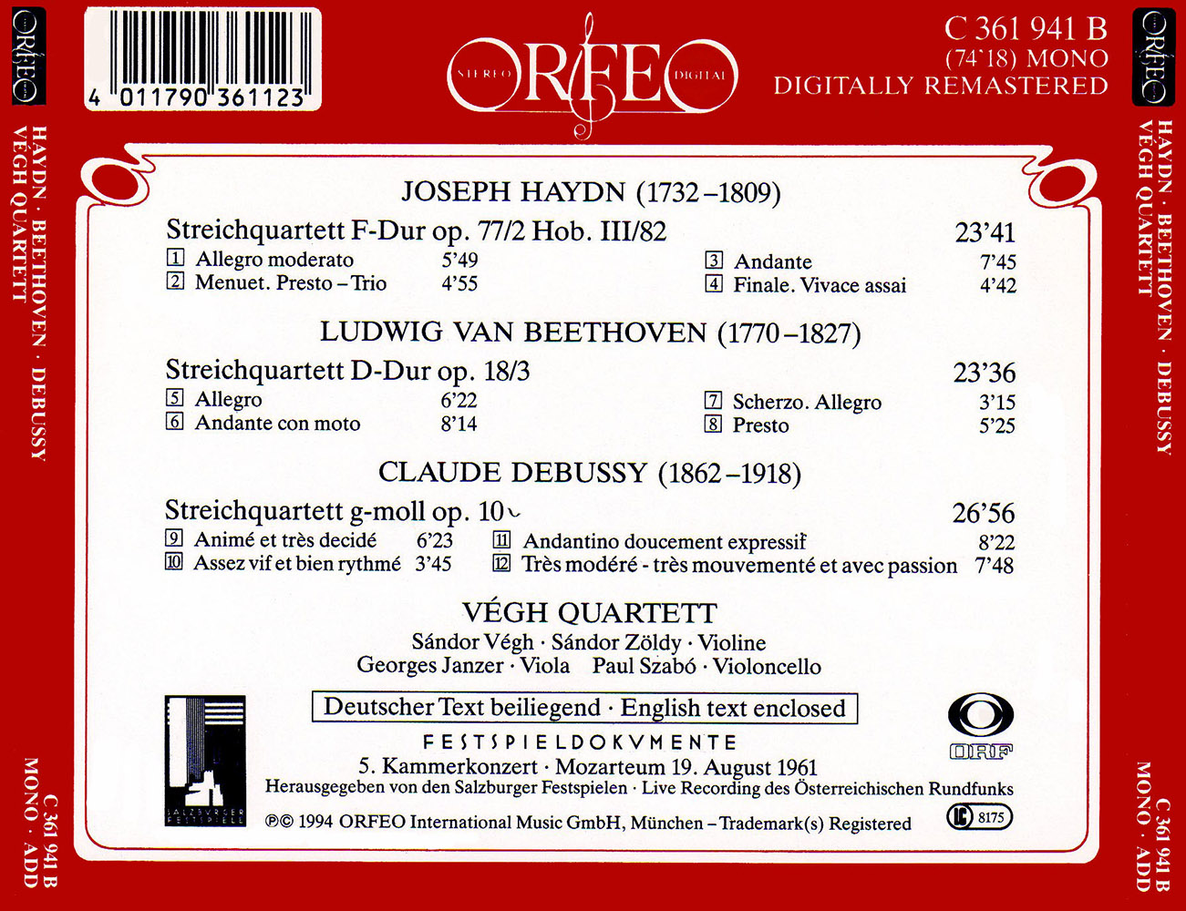 Haydn: String Quartet No. 67, 'Lobkowitz' - Beethoven: String Quartet No. 3 - Debussy: String Quartet