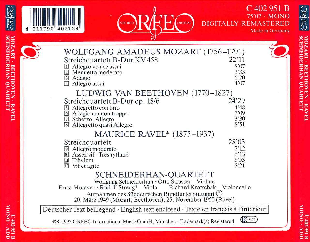 Mozart: Streichquartett KV 458 / Beethoven: Streichquartett, Op. 18, No. 6 / Ravel: Streichquartett