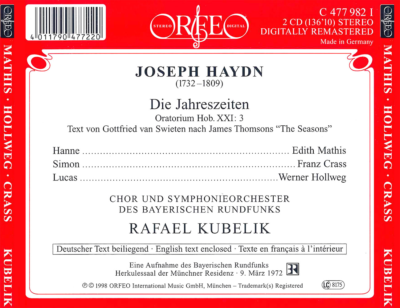 Die Jahreszeiten (The Seasons), Hob.XXI:3