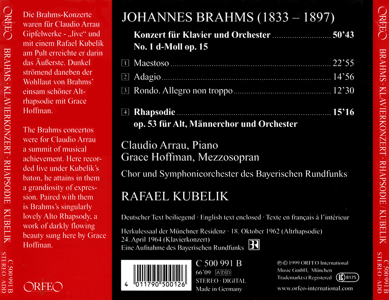 Brahms: Piano Concerto No. 1 in D Minor, Op. 15; Alto Rhapsody, Op. 53
