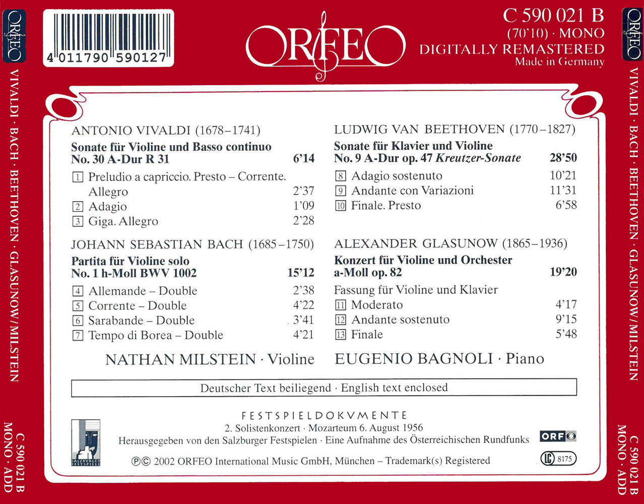 Vivaldi: Violin Sonata in A Major - Bach: Violin Partita No. 1 - Beethoven: Violin Sonata No. 9, "Kreutzer"