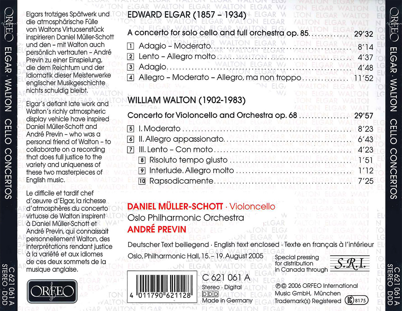 presents Daniel Müller-Schott’s new CD featuring the cello concertos of Edward Elgar and William Walton, two works which since their premières in 1919 and 1957 respectively have been among the touchstones of the repertory of all great cellists. Both works, moreover, have fascinated Daniel Müller-Schott since his early adolescence and fired his artistic imagination.