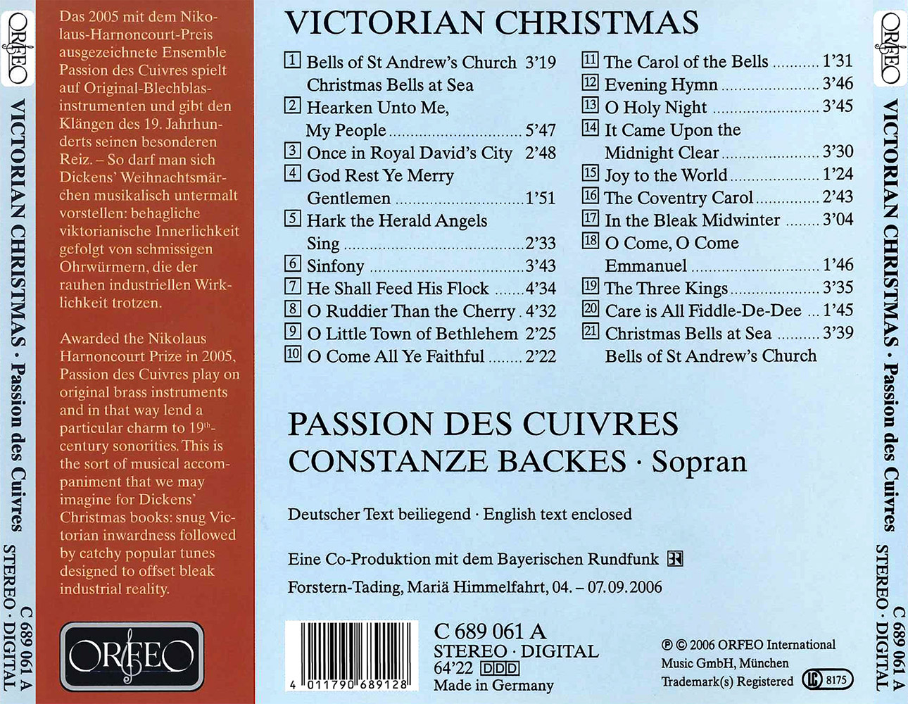 Foto: Tobias Kadewas formed in 2003 and has already received its patent of nobility from Nikolaus Harnoncourt, who has praised the group for its authentic use of period instruments in reviving this two-hundred-year-old tradition of performing chamber music written for brass ensembles. In addition to traditional carols by William Sandys (1792–1874), Lewis Henry Redner (1830–1908) and Lowell Mason (1792–1872), justice is done to the high standards of amateur groups in the 19th century by including arrangements of Baroque and Romantic choral numbers by composers as diverse as Purcell, Handel and Mendelssohn. In addition to cornets, horns and trombones, the listener will even hear an ophicleide, a kind of bass horn that was a forerunner of the euphonium. This instrument really comes into its own in an arrangement like that of Polyphemus’s aria „O ruddier than the cherry“ from Handel’s Acis and Galatea, where the listener will be struck by its jaunty flexibility. In general, the music-making of Passion des Cuivres is marked by lighter timbres than those produced by modern instruments. The sound spectrum of the present CD is further extended by the soprano Constanze Backes and by the bells of St Andrew’s Church, Sonning near Reading, which have been cast over a period of three centuries, their sounds guaranteeing an atmospheric beginning and end to this musical journey.