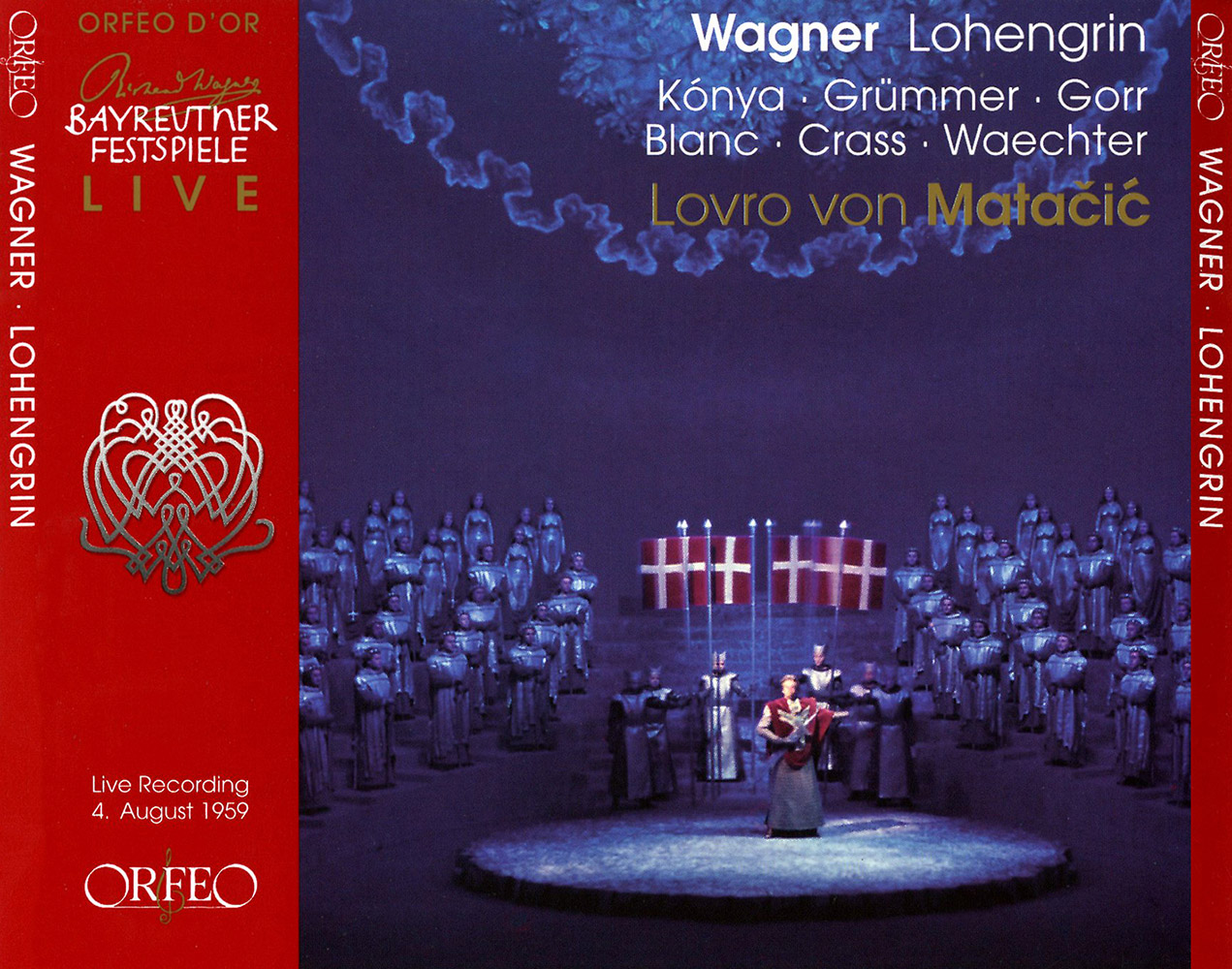 Kónya’s partners are no less outstanding: in Elisabeth Grümmer (Elsa) and Franz Crass (King Henry) we have two more interpreters able to marry clear diction with a beautiful singing tone, an ability that was later to be increasingly lost. The demonic couple of Ortrud and Telramund is taken by Rita Gorr and Ernest Blanc, who provide the most striking imaginable contrast with the radiant Elsa and Lohengrin. Neither of them specialized in character roles in the heavy German tradition but had learnt to produce dark tone colours on the basis of the naturally covered vowels typical of the French school of singing. As the Herald, the young Eberhard Waechter was luxury casting, while particular pleasure in this choral opera par excellence is afforded by the Bayreuth Festival Chorus under its legendary chorus master Wilhelm Pitz. Making his Bayreuth Festival début was the conductor Lovro von Matacic, who that same year also appeared for the first time at both La Scala, Milan, and the Vienna State Opera. He went on to conduct dozens of other successful performances, chiefly of the Italian repertory. His Lohengrin is correspondingly notable for its effervescent brio and italianità. The result is a reading of remarkable unity, a performance once much sought after by record collectors and now finally officially available in the optimal sound quality that typifies all Orfeo releases in its Festspieldokumente series.