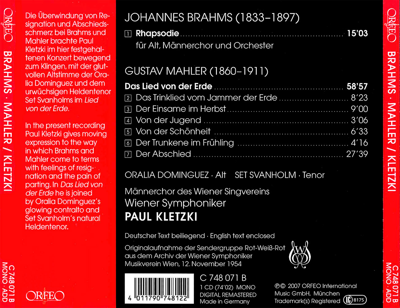 Brahms: Alto Rhapsody - Mahler: Das Lied von der Erde