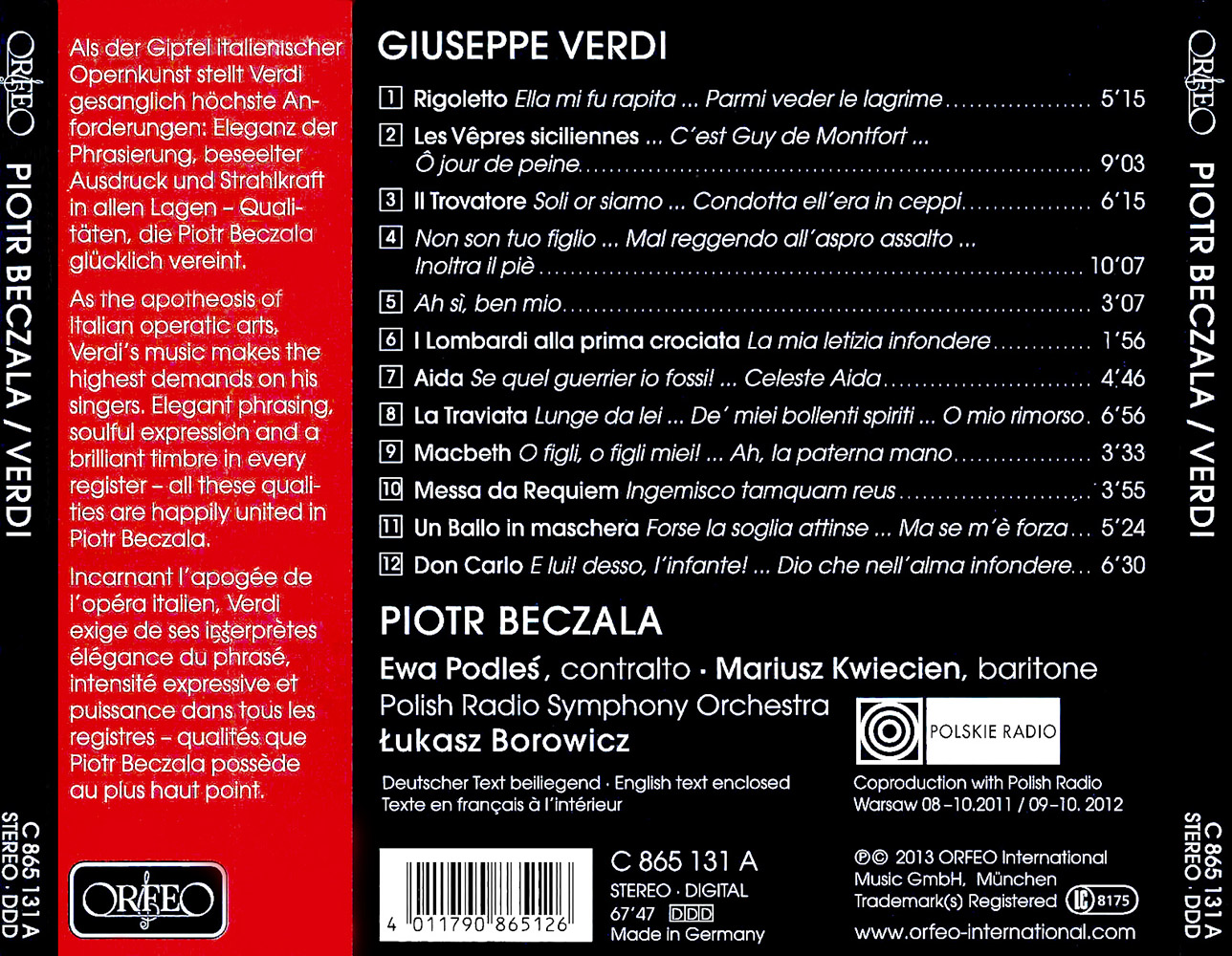 The internationally renowned tenor Piotr Beczala celebrates the 200th anniversary of Giuseppe Verdi’s birth with a collection of highlights that include the roles in which he has for years been acclaimed on the world’s great operatic stages.