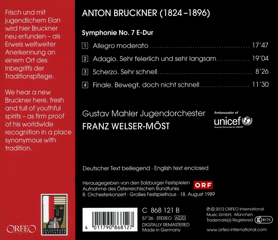 We can draw similar conclusions about Franz Welser-Möst, whose first Bruckner performance at the Salzburg Festival was justly celebrated in 1989. He conducted the Gustav Mahler Youth Orchestra in the Seventh Symphony, in an interpretation by these young performers that was astonishing in its transcendence and in its manner of outlining the work’s musical contrasts. It was no surprise that the press greeted the conductor and the orchestra as a sensation and as a great hope for the future – it was also, after all, the first Festival “after” Karajan. Those hopes were later confirmed, and Welser-Möst and the Gustav Mahler Youth Orchestra have since then returned to Salzburg on a regular basis.