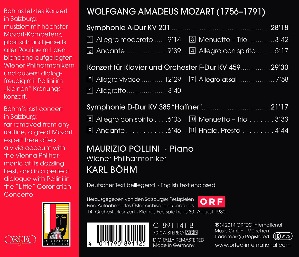 For purists there was an all-Mozart programme with the Vienna Philharmonic at the 1980 Festival, with no less a figure than Karl Böhm on the podium. It was to be his farewell to the Festival, though no one would have thought it, given the clarity and crispness of his interpretations of the A-major symphony K 201 and the Haffner Symphony K 385. With Maurizio Pollini he had a partner at the piano for the “Little Coronation Concerto” K 459 who audibly shared his perception of music-making and was similarly able to illuminate the music as if from within. Together with Böhm and the Vienna Philharmonic, he brought this concerto to perfection.