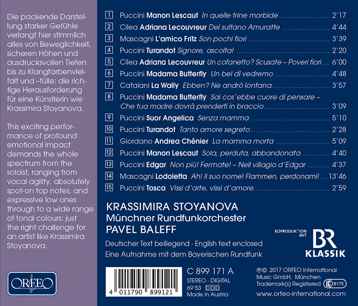 As with her two previous albums for the Orfeo label, she is accompanied by the Munich Radio Orchestra under Pavel Baleff with great sensitivity and intensity, thereby giving each of these classic opera scenes their own musical world.