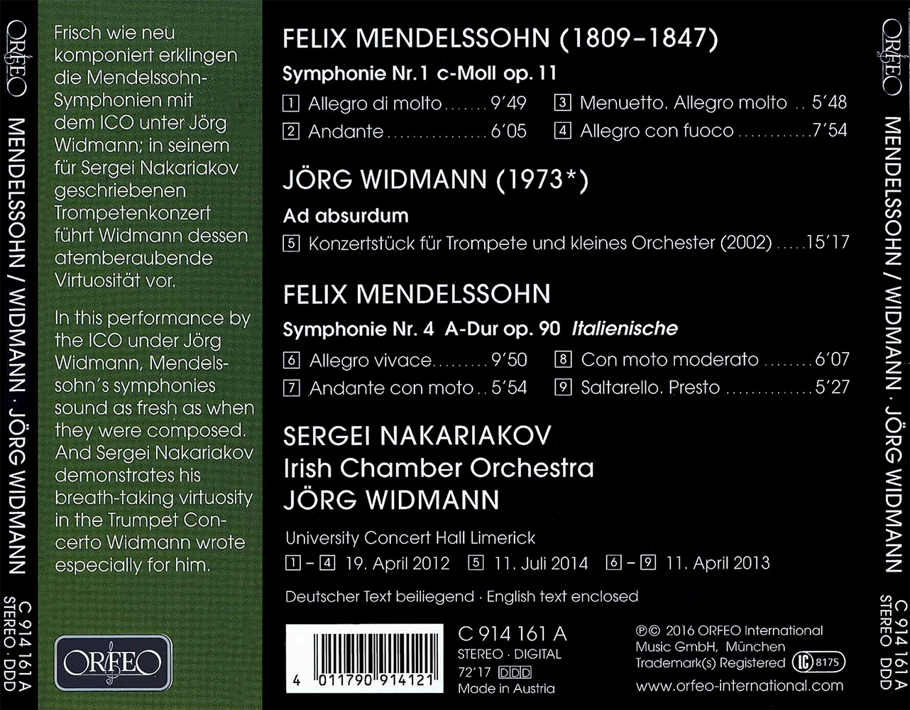 Mendelssohn: Symphonies Nos. 1 & 4 - Widmann: Ad absurdum