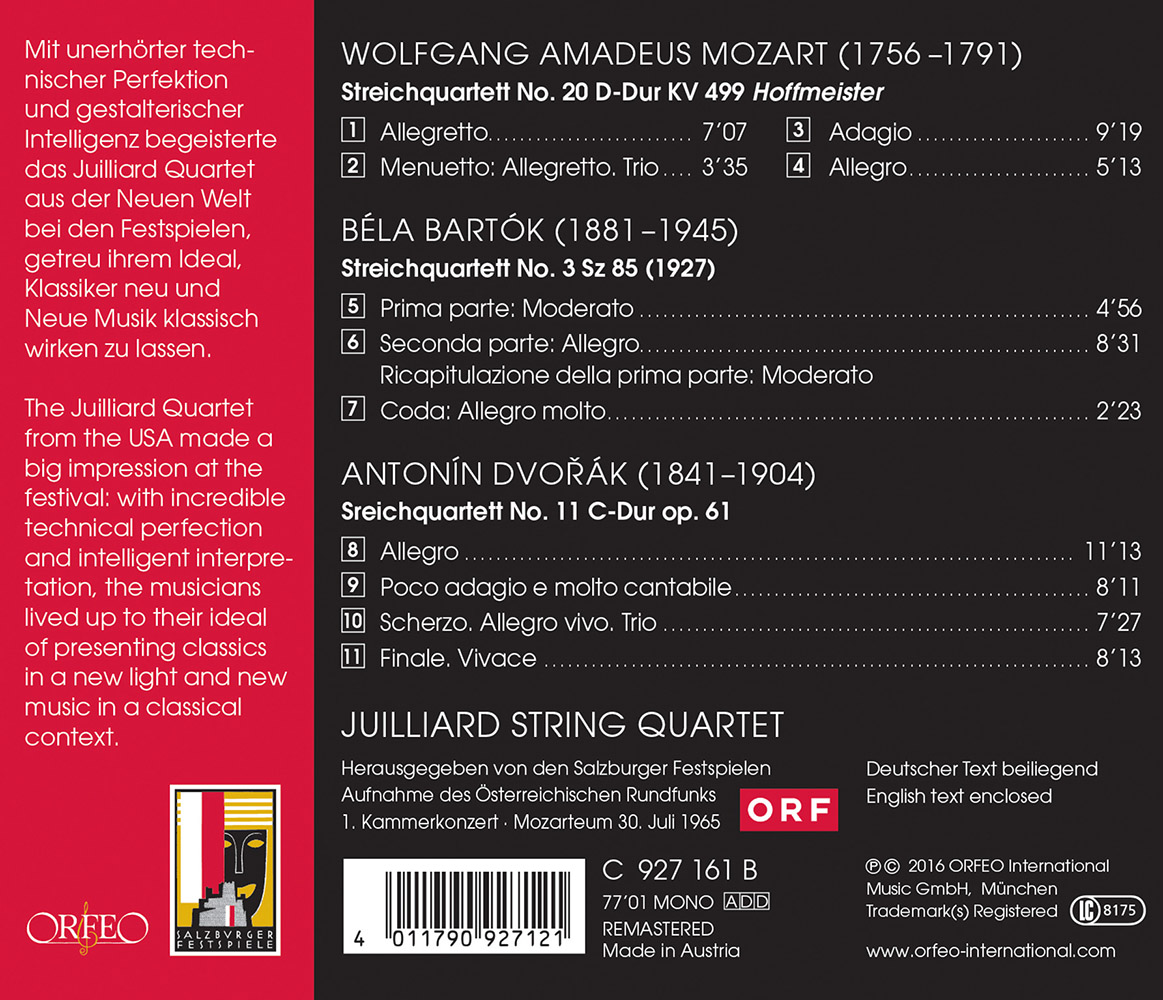 Juilliard String Quartet play Mozart, Dvorak & Bartók